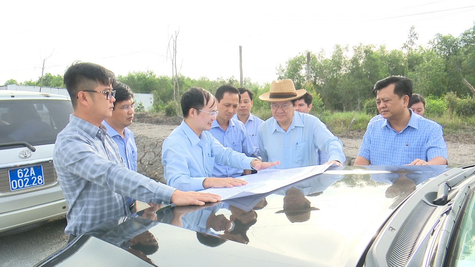 Nguyên Chủ tịch nước - Trương Tấn Sang cùng đại diện lãnh đạo tỉnh, huyện kiểm tra dự án Khu công gnhiệp Hựu Thạnh, huyện Đức Hòa