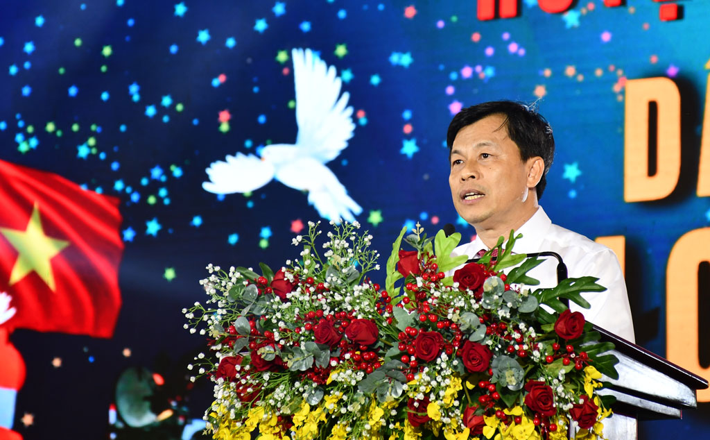 Trước khi bước vào đêm nhạc, Chủ tịch UBND huyện - Lê Trường Chinh ôn lại truyền thống anh hùng, bất khuất của quân và dân ta cùng chiến thắng vẻ vang ngày 30/4 lịch sử góp phần giải phóng miền Nam, thống nhất đất nước.