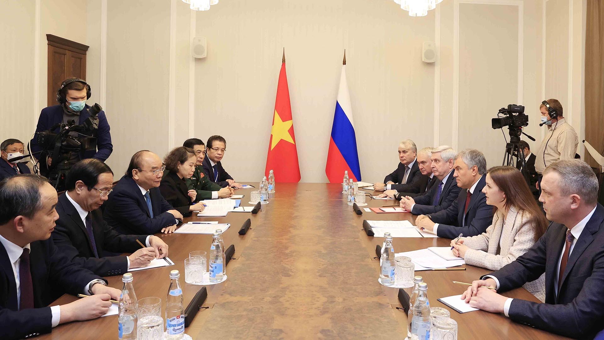 Chủ tịch Duma Quốc gia Nga Vyacheslav Volodincũng nhất trí với những đề xuất của Chủ tịch nước Nguyễn Xuân Phúc về đẩy mạnh trao đổi kinh nghiệm lập pháp và giám sát giữa hai Quốc hội, và Ủy ban liên nghị viện cũng là cơ chế hợp tác song phương đặc biệt tại Duma Quốc gia Nga với Quốc hội Việt Nam; phối hợp hoàn thiện hành lang pháp lý thuận lợi cho hợp tác song phương, duy trì hợp tác chặt chẽ giữa hai Quốc hội tại các cơ chế nghị viện đa phương, cũng như phát huy hơn nữa hợp tác giữa Nhóm Nghị sĩ hữu nghị của hai Quốc hội. Chủ tịch Volodin mong muốn mời lãnh đạo Quốc hội Việt Nam dự Diễn đàn quốc tế “Sự phát triển của chủ nghĩa đại nghị viện” vào tháng 9/2022 tại Moskva.