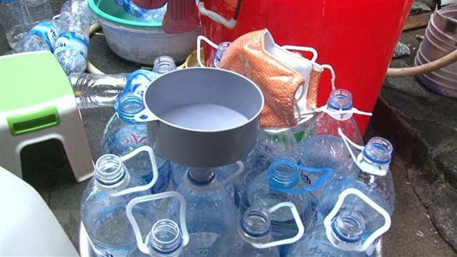 Tại đây, lực lượng chức năng còn phát hiện có hơn 100 chai nhựa, loại 1,5 lít (vỏ chai nước suối đã qua sử dụng được bà Mùa mua lại) bên trong có chứa giấm ăn vừa được pha chế chuẩn bị đưa ra thị trường.