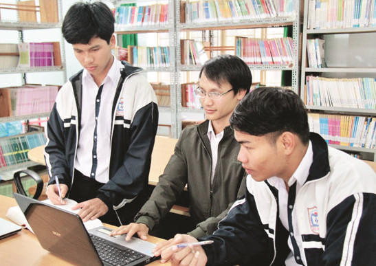| Thầy Văn Thành Đạt cùng học sinh trải nghiệm ứng dụng |