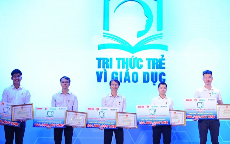 | Thầy Văn Thành Đạt (thứ 3 từ phải qua) nhận giải thưởng cao nhất từ chương trình “Tri thức trẻ vì giáo dục” năm 2019 |