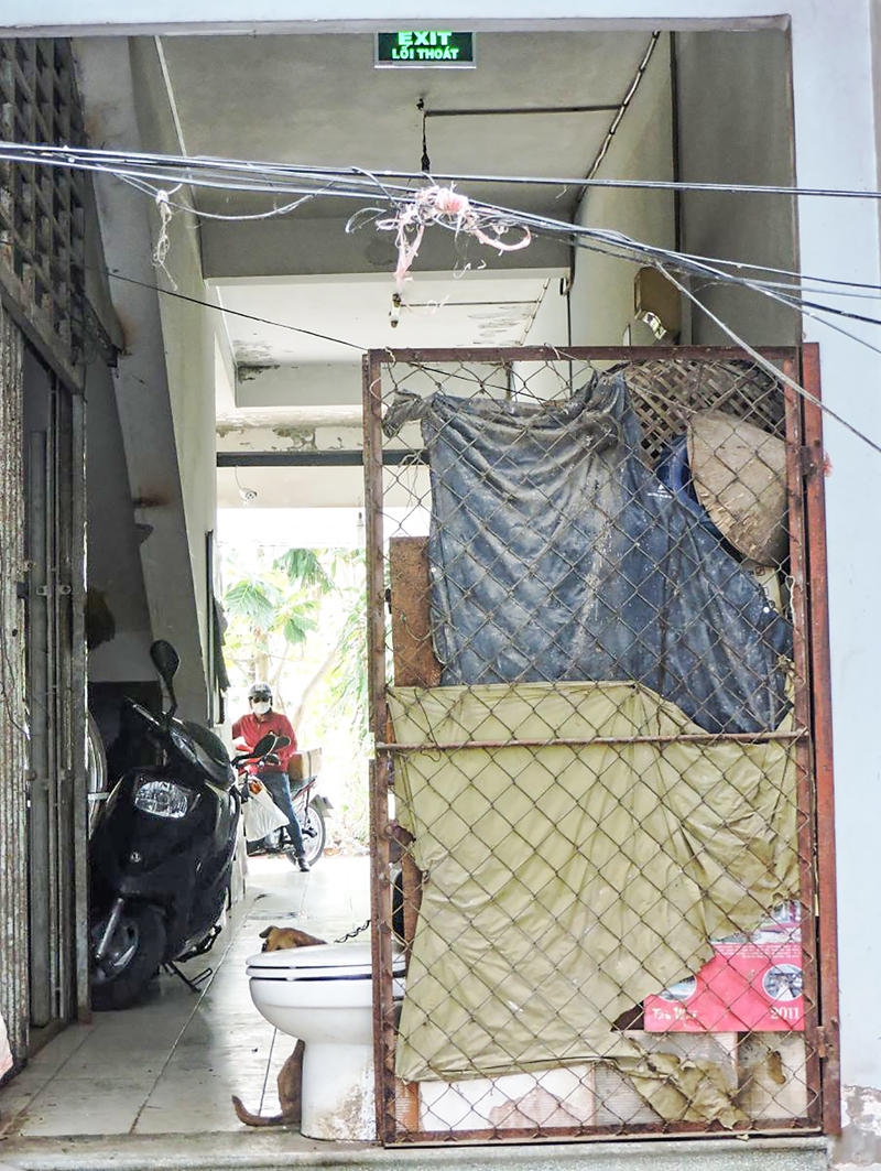 Lối thoát hiểm ở Chung cư 91B đã bị các hộ dân chiếm dụng làm nơi để vật dụng của gia đình. Ảnh chụp chiều 6-4. Ảnh: Thùy Trang