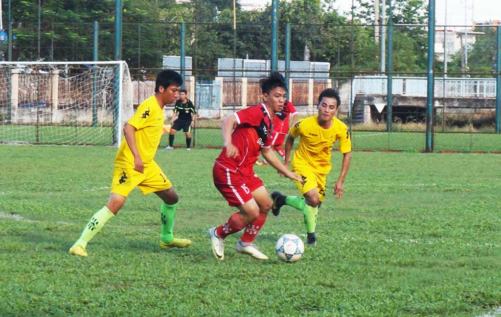 Dũng Phong (áo đỏ) giành chiến thắng trước Bình Dương và đoạt chức vô địch Cúp Báo Long An