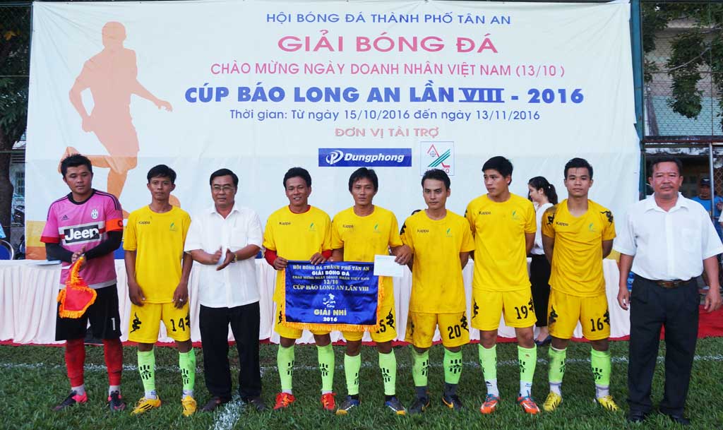 Trưởng Ban Tổ chức giải, Phó Tổng Biên tập Báo Long An – Lê Hồng Thương (thứ 3, trái qua) trao giải Nhì cho đội Bình Dương