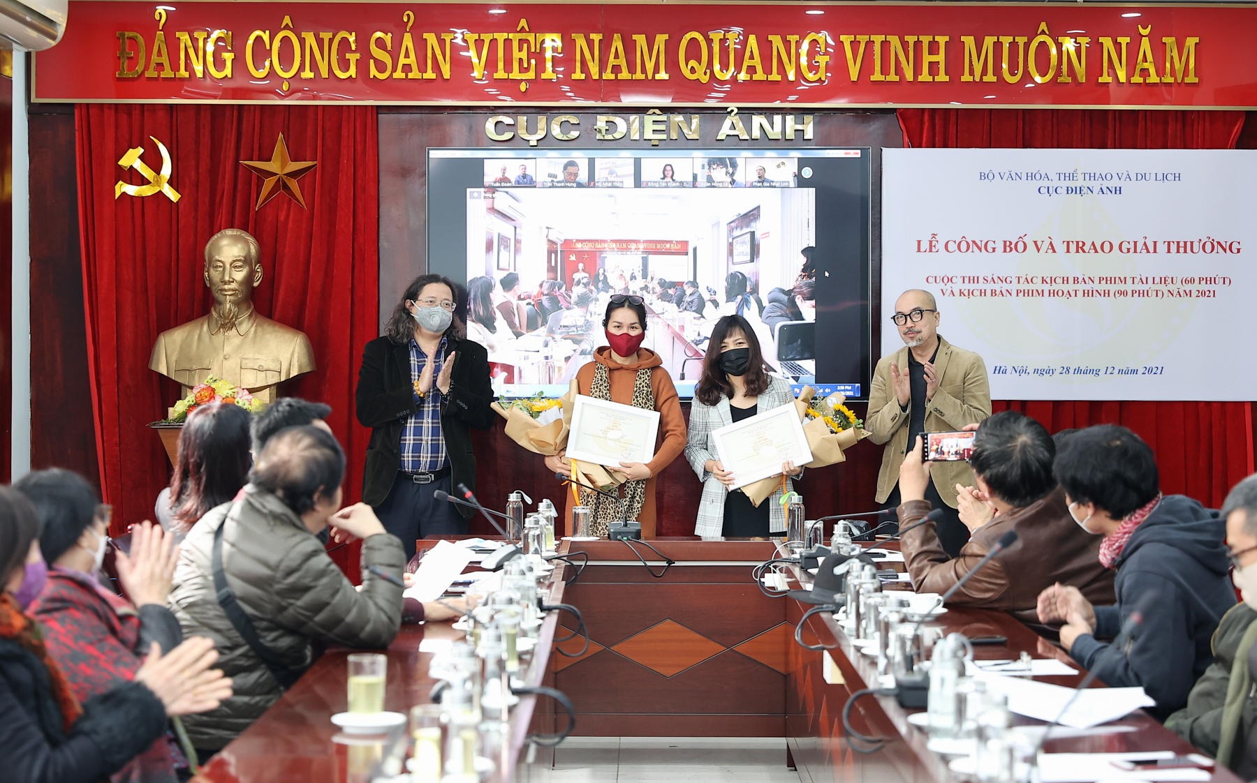 Chiều 28/12, tại Hà Nội, Cục Điện ảnh (Bộ Văn hóa, Thể thao và Du lịch) tổ chức Lễ công bố và trao giải "Sáng tác kịch bản phim Tài liệu (60 phút) và kịch bản phim Hoạt hình (90 phút) năm 2021".