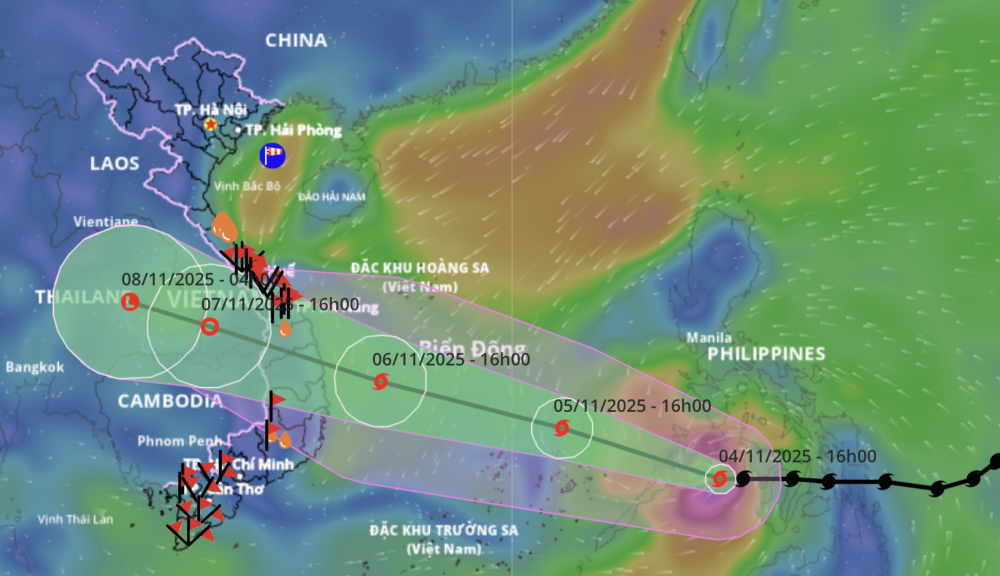 Dự báo khi đi vào khu vực đặc khu Trường Sa (ngày 06/11) và vùng biển ngoài khơi Đà Nẵng - Khánh Hòa, bão có khả năng đạt cường độ cực đại cấp 14, giật cấp 16-17. Thậm chí có mô hình dự báo bão có thể mạnh trên cấp 14", ông Khiêm nói.