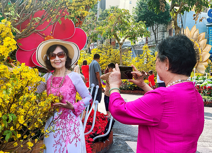 Không gian Đường hoa nghệ thuật trở thành nơi để người dân và du khách lưu lại nhiều bức ảnh đẹp. Ảnh: KIỀU MAI