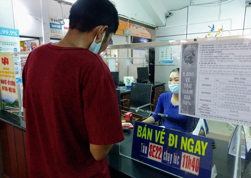 | Hành khách mua vé tại ga Sài Gòn. |