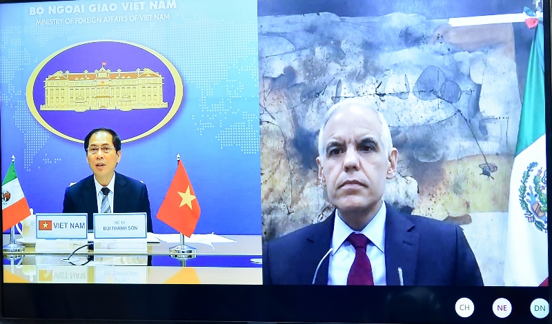 | Thứ trưởng Thường trực Bộ Ngoại giao Bùi Thanh Sơn hội đàm trực tuyến với Thứ trưởng Ngoại giao Liên bang Mexico Hu-li-ô Vên-tu-ra |