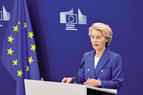 Chủ tịch EC von der Leyen phát biểu trong cuộc họp báo hôm 4-3. Ảnh: NYT