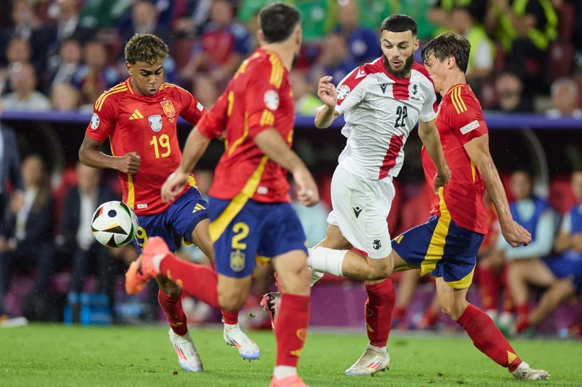 "Cơn địa chấn" mang tên Gruzia đã phải dừng bước trước ứng viên nặng ký cho chức vô địch EURO 2024 là Tây Ban Nha khi để thua 1-4 trong trận đấu vòng 1/8 ở Cologne (Đức) ngày 30/6/2024. (Ảnh: TTXVN phát)