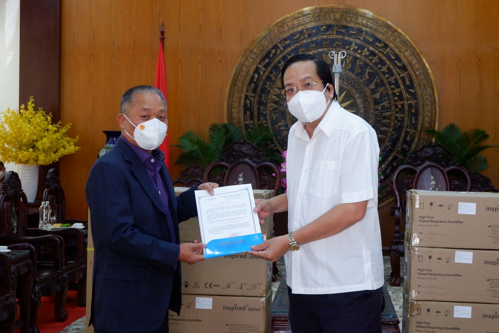 Ông cho biết, món quà này thật sự thiết thực cho công tác điều trị bệnh nhân nhiễm Covid-19. Các thiết bị sẽ được giao cho Sở Y tế phân bổ đến các cơ sở điều trị bệnh nhân Covid-19, sớm đưa vào vận hành, phát huy hiệu quả, kịp thời cứu chữa bệnh nhân nặng, hạn chế tối đa tỷ lệ tử vong./.