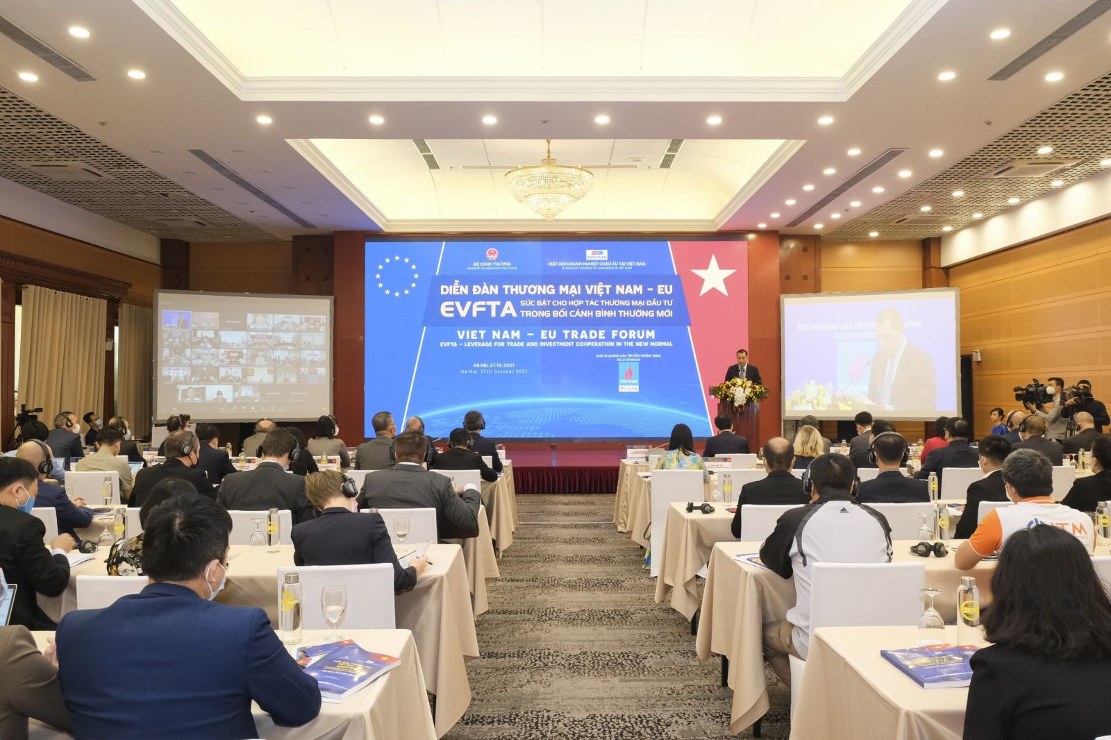 Nhằm tăng cường kết nối quan hệ kinh tế, thương mại, đầu tư giữa Việt Nam và Liên minh châu Âu EU, với nỗ lực đồng hành cùng cộng đồng doanh nghiệp, cũng như hai Bên đã tận dụng hiệu quả lợi thế từ Hiệp định EVFTA, để đón đầu các cơ hội mới trước xu hướng phục hồi kinh tế toàn cầu, Bộ Công Thương đã phối hợp với Hiệp hội Doanh nghiệp châu Âu tại Việt Nam EuroCham tổ chức Diễn đàn Thương mại Việt Nam – EU “EVFTA – Sức bật cho hợp tác thương mại đầu tư trong bối cảnh bình thường mới” vào ngày 27/10 tại Hà Nội theo hình thức trực tiếp và trực tuyến.