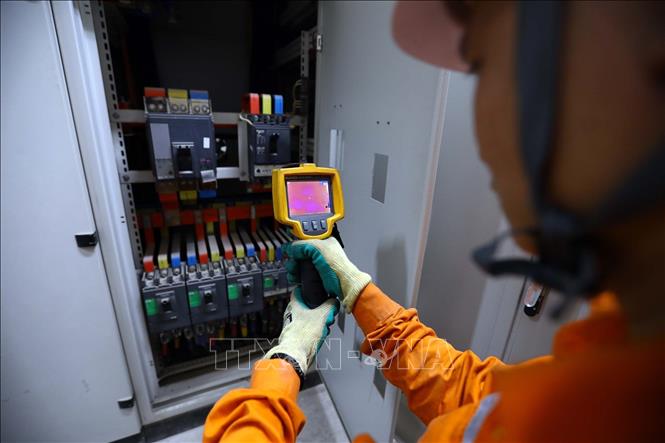 | Những ngày này, các thợ điện phải tăng cường kiểm tra tại các điểm có phụ tải lớn để tránh sự cố xảy ra. Ảnh: Huy Hùng - TTXVN |