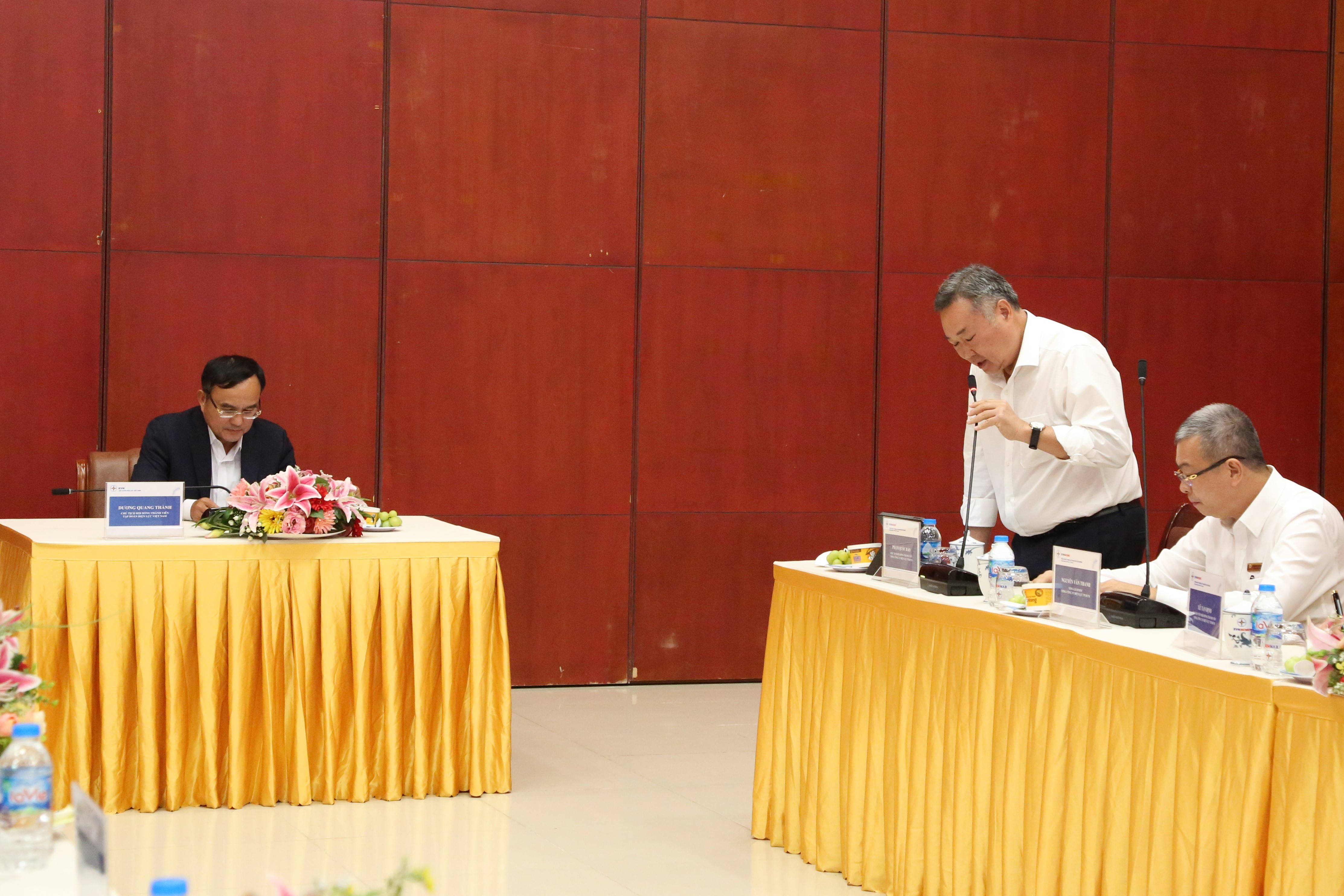 Tham dự buổi làm việc có ông Cao Quang Quỳnh – Thành viên Hội đồng Thành viên EVN, ông Nguyễn Quang Lâm, ông Nguyễn Xuân Nam – PTGĐ EVN và lãnh đạo các Ban chức năng thuộc EVN.