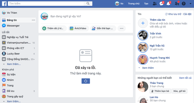 Facebook không thể hiển thị được các bài viết mới. - Ảnh chụp màn hình