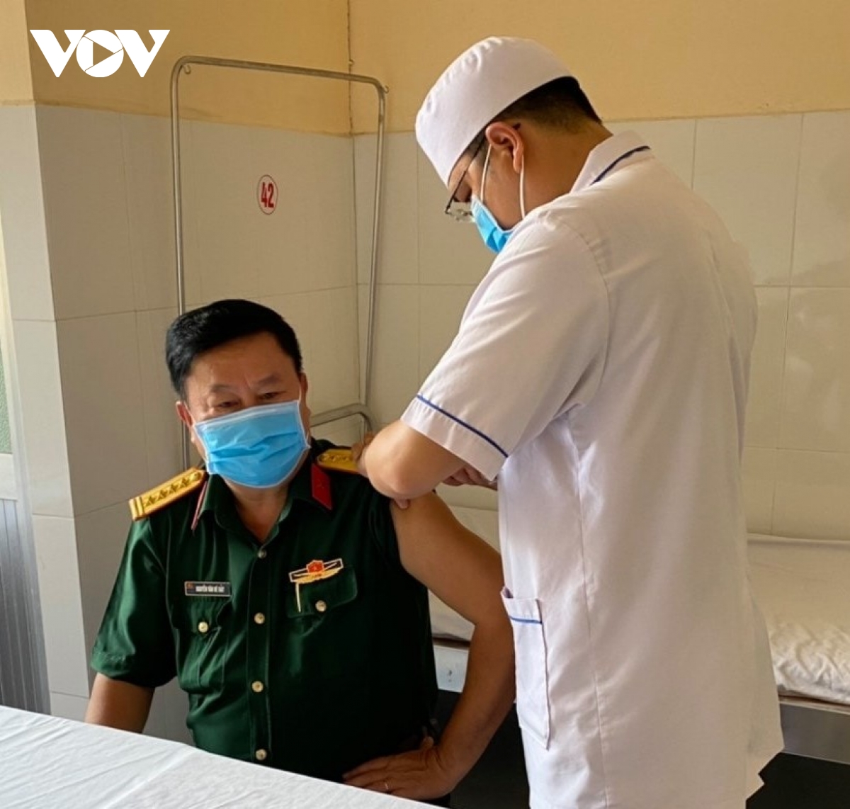 Cán bộ biên phòng được tiêm phòng vắc xin tại Bệnh viện Quân y 120