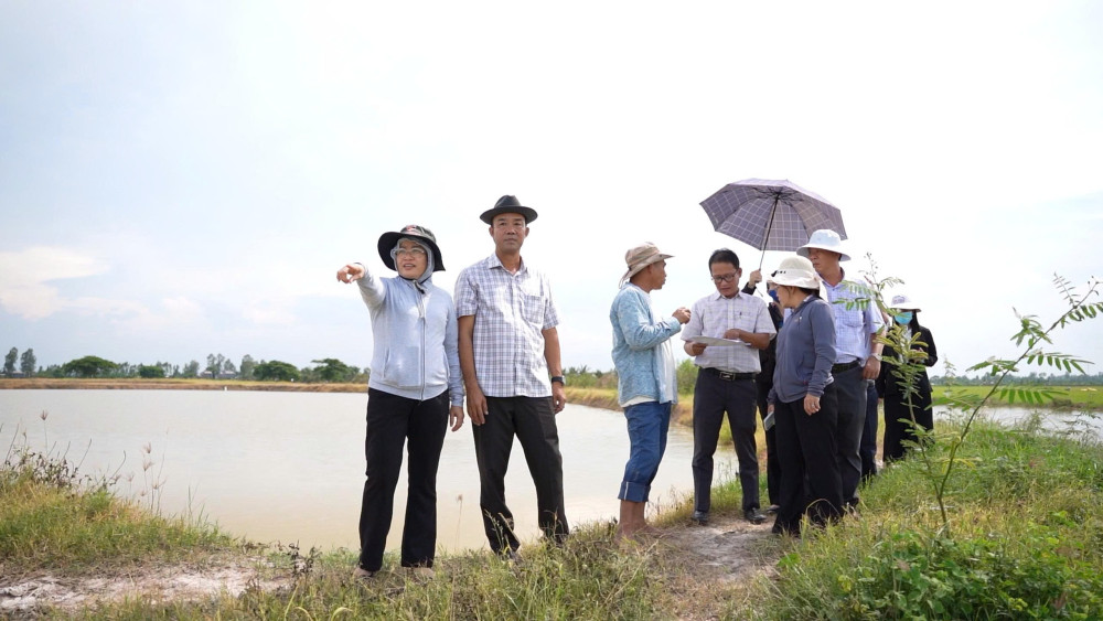 Đoàn khảo sát tình hình thực tế tại khu vực có 250ha lúa đang bị đe dọa