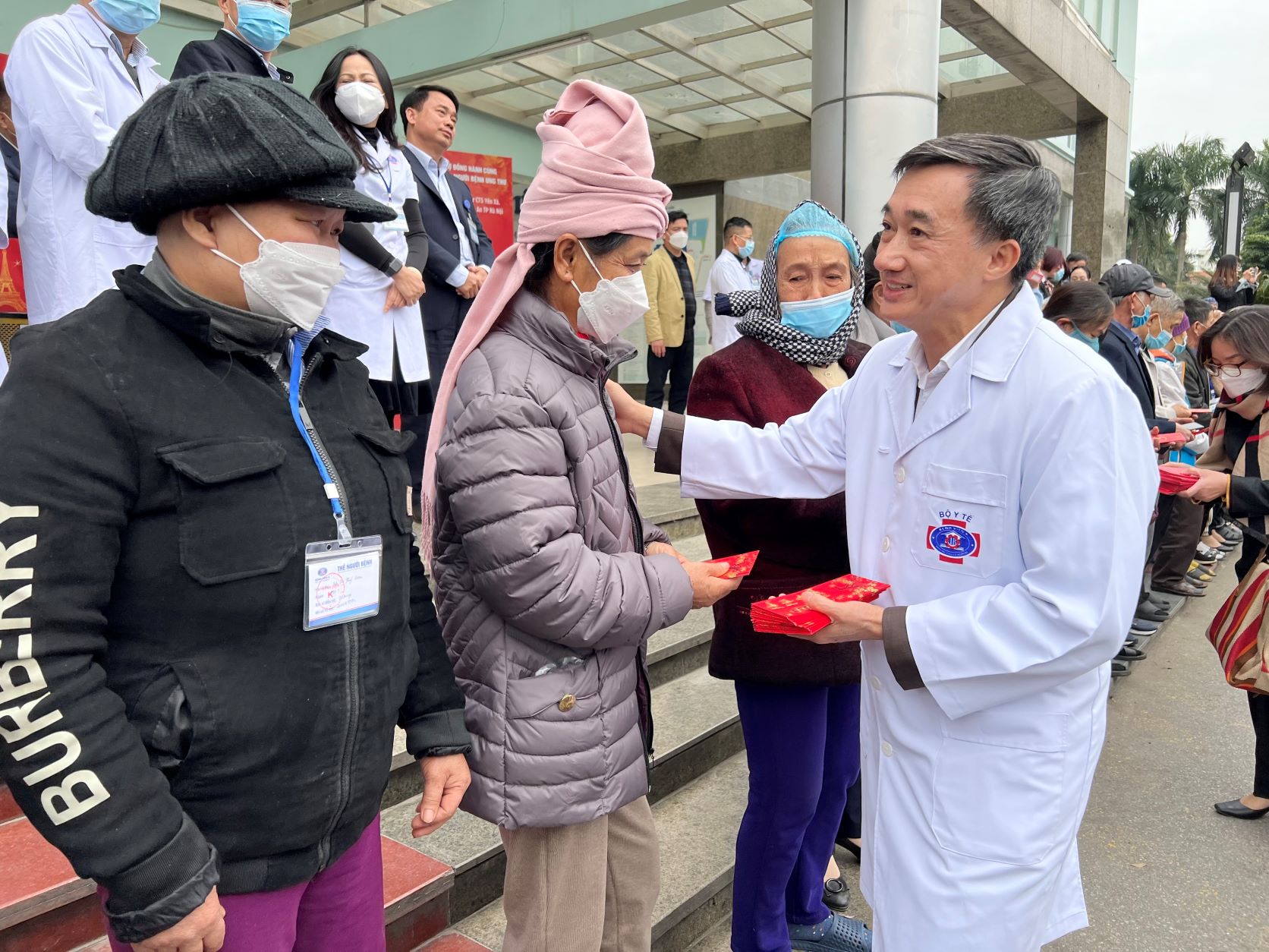 GS.TS Trần Văn Thuấn, Thứ trưởng Bộ Y tế và đoàn công tác Bộ Y tế cùng Ban Lãnh đạo Bệnh viện đã có cuộc gặp gỡ, chia sẻ đầy xúc động với các bệnh nhân, gửi lời chúc sức khỏe và chúc mừng năm mới tới những người bệnh chuẩn bị lên đường về quê ăn Tết và cán bộ y tế bệnh viện.