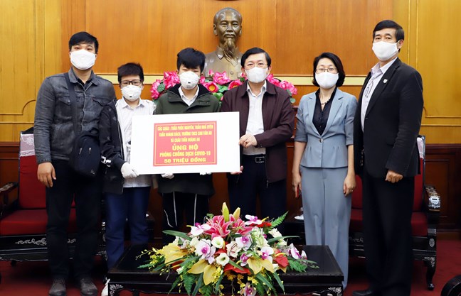 * Cũng trong chiều 1/4, Phó Chủ tịch Nguyễn Hữu Dũng tiếp nhận ủng hộ từ Công ty TNHH JP Corelex (Việt Nam) ủng hộ 500 thùng giấy vệ sinh Corelex trị giá 105 triệu đồng; các cháu Trần Phúc Nguyên, Trần Nhã Uyên, Trần Hoàng Bách, Trường THCS Chu Văn An và cháu Trần Hoàng An ủng hộ 50 triệu đồng; Công ty cổ phần xây lắp điện Thành An ủng hộ số tiền 20 triệu đồng…