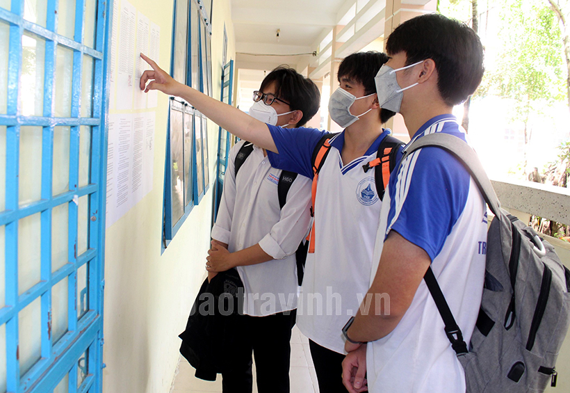 Thí sinh xem danh sách dự thi tại điểm thi Trường THCS Lý Tự Trọng, thành phố Trà Vinh.