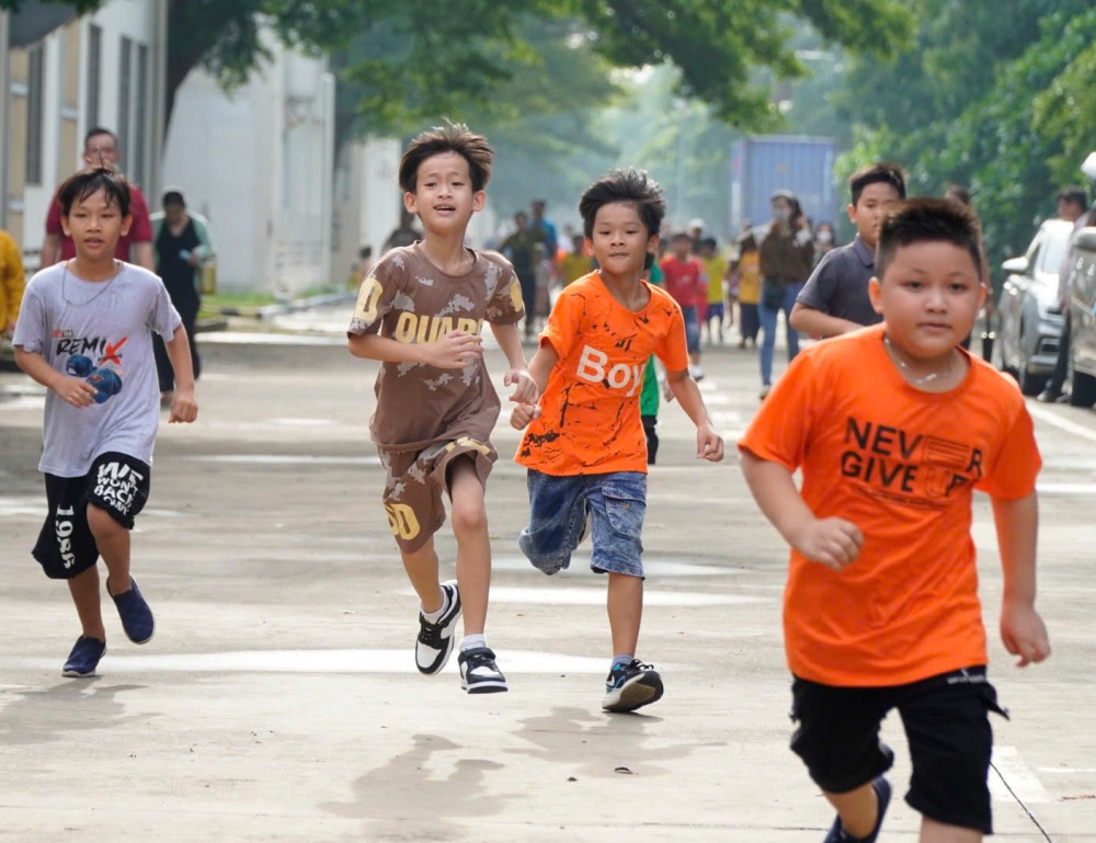 Con của đoàn viên, người lao động tham gia chạy việt dã do Công đoàn cơ sở Công ty TNHH Giầy Ching Luh Việt Nam tổ chức