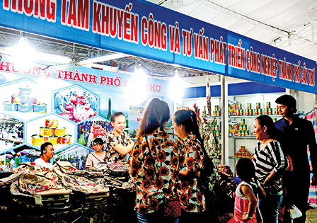 Trung tâm Khuyến công và Tư vấn Phát triển công nghiệp TP Cần Thơ hỗ trợ doanh nghiệp giới thiệu sản phẩm công nghiệp, tiểu thủ công nghiệp tại Hội chợ Thương mại - Triển lãm sản phẩm công nghiệp nông thôn tỉnh Trà Vinh vào tháng 4-2017.