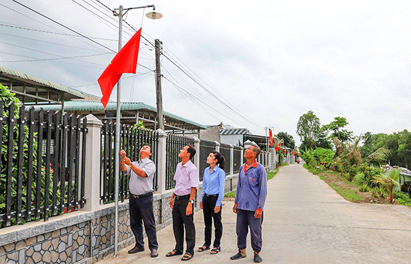 HND xã Ðông Hiệp, huyện Cờ Ðỏ vận động nhân dân xây dựng tuyến đèn đường trước ngõ tại ấp Ðông Phước.