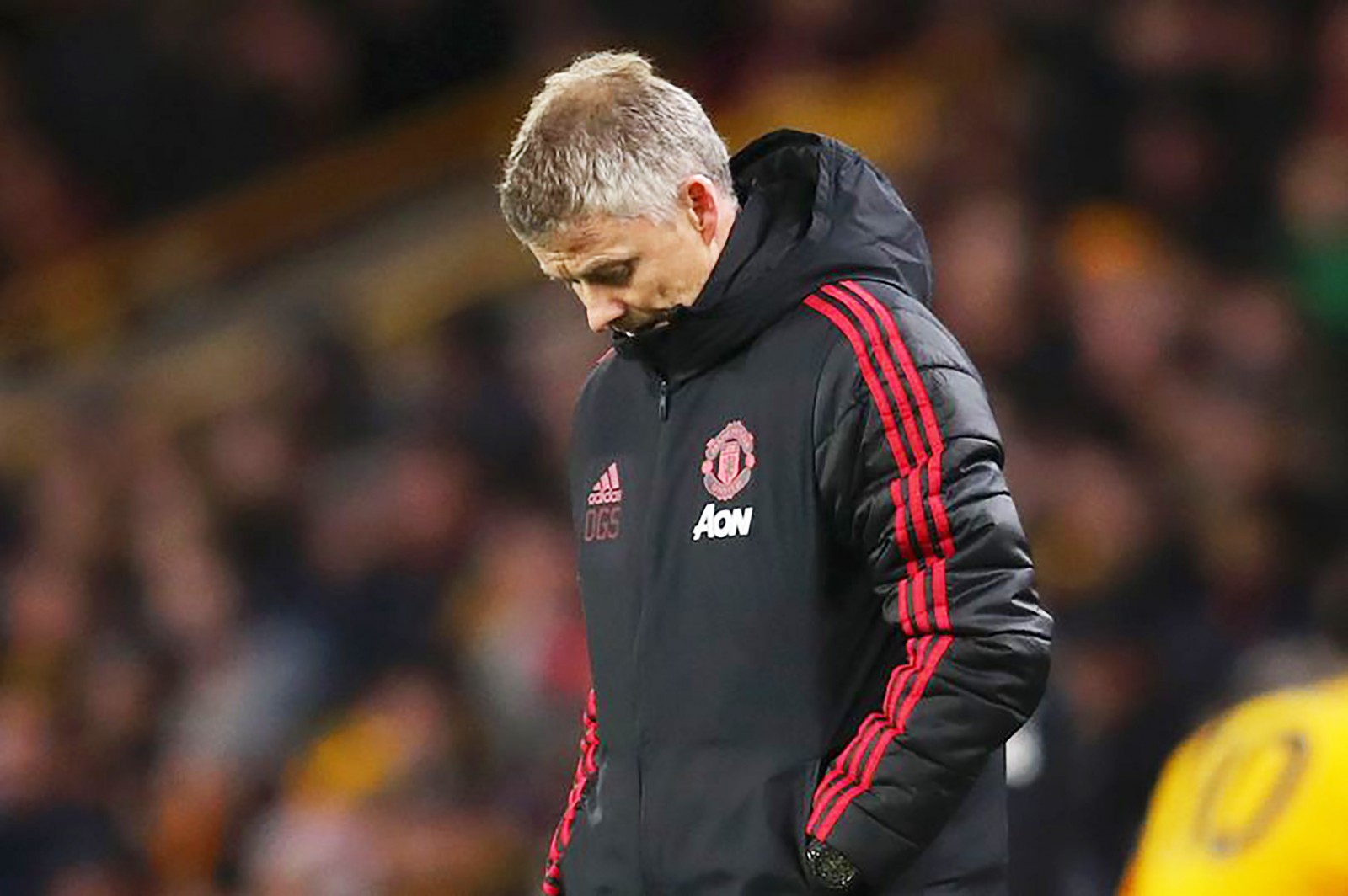 HLV Solskjaer buồn bã sau trận MU thua Wolves. Ảnh: Manchestereveningnews