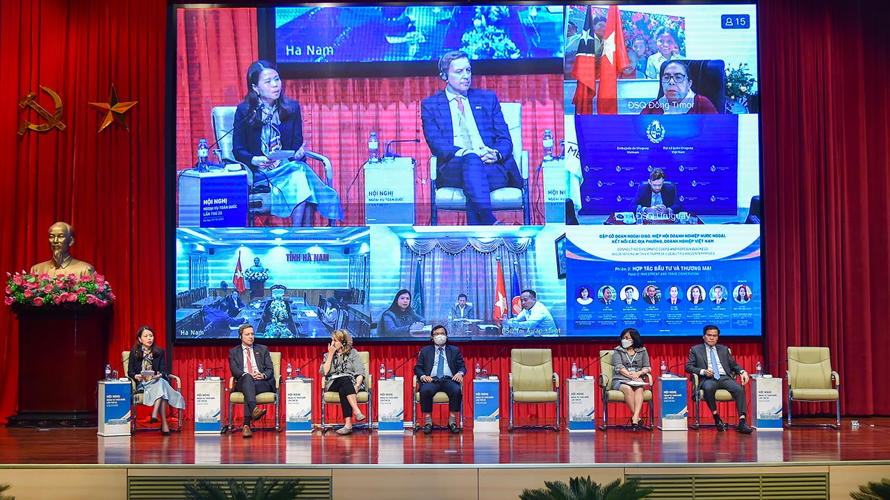 Trong khuôn khổ Hội nghị Ngoại vụ toàn quốc lần thứ 20 do Bộ Ngoại giao tổ chức, chiều ngày 13/12/2021, Tọa đàm “Gặp gỡ Đoàn Ngoại giao, Hiệp hội doanh nghiệp nước ngoài, kết nối địa phương, doanh nghiệp Việt Nam” đã diễn ra trực tiếp kết hợp trực tuyến với gần 300 điểm cầu ở Việt Nam và quốc tế.