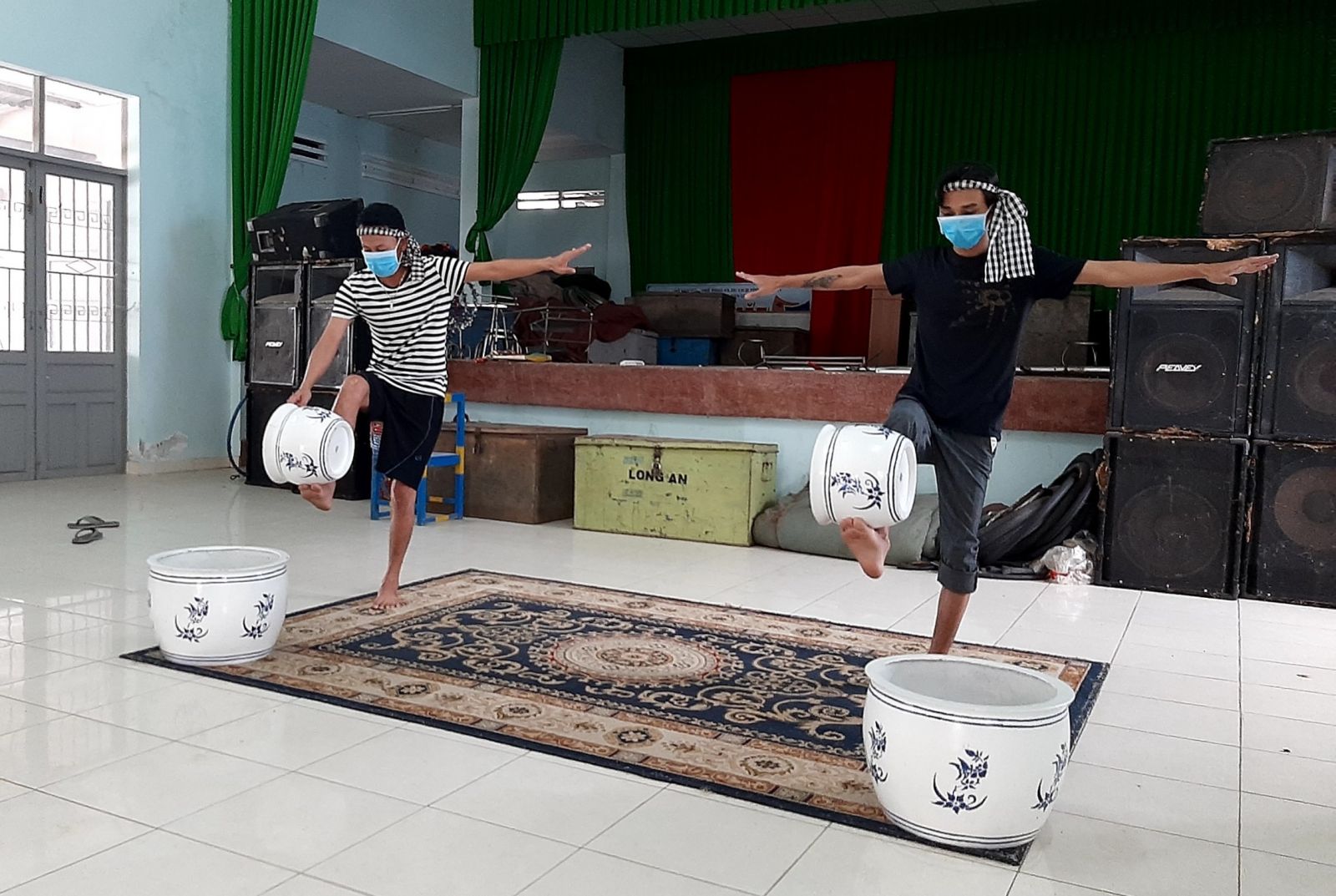 Không đi biểu diễn nhưng anh em nghệ sĩ Đoàn Xiếc Long An vẫn duy trì tập luyện đều đặn và bảo đảm thực hiện nghiêm túc “5K” trong quá trình tập