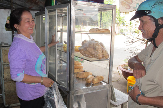 Bà Đỗ Thị Thành Nhân (bìa trái) luôn lạc quan trong cuộc sống