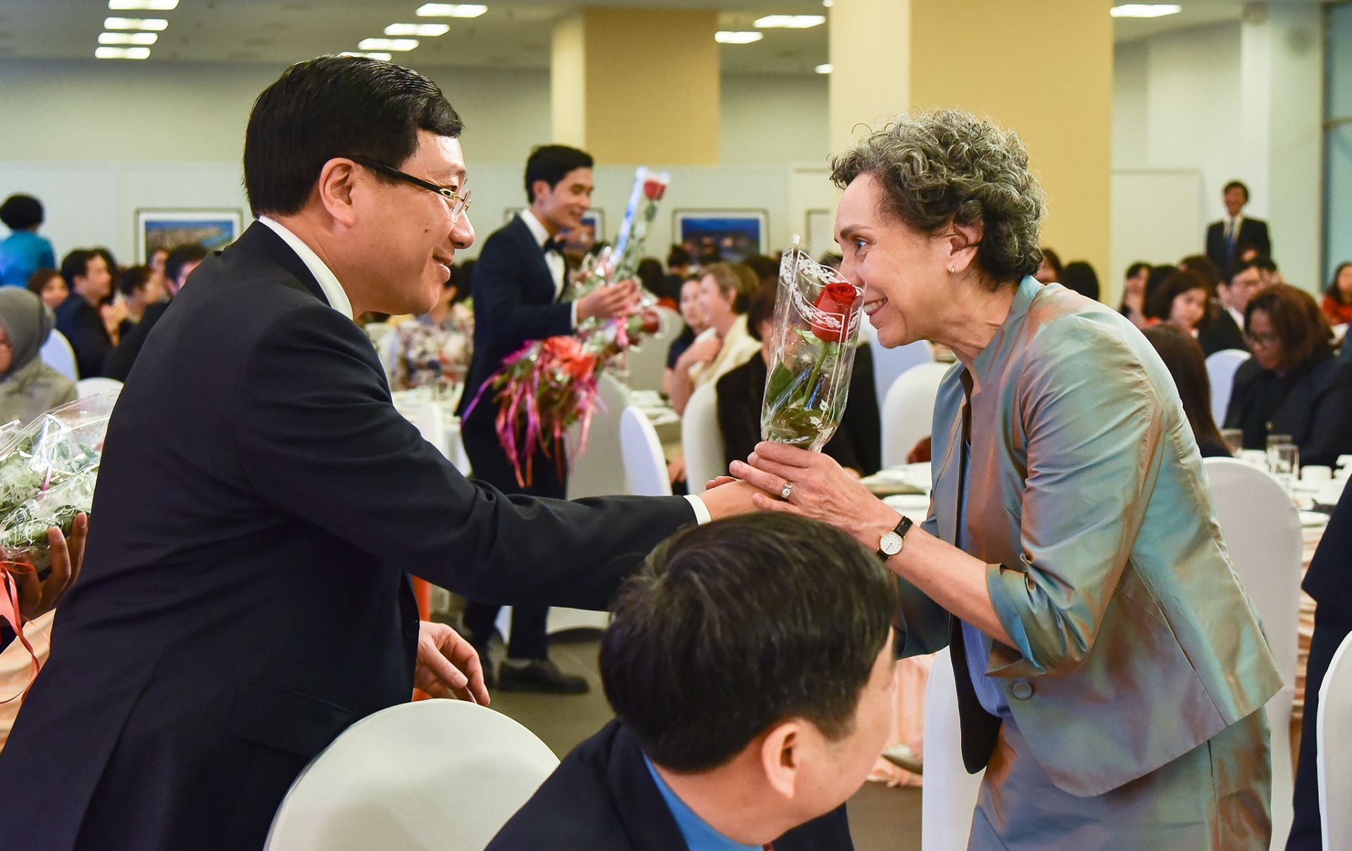 Tham dự buổi gặp mặt có Phó Thủ tướng, Bộ trưởng Bộ Ngoại giao Phạm Bình Minh, Thứ trưởng thường trực kiêm Trưởng Ban vì sự tiến bộ của phụ nữ Bộ Ngoại giao Bùi Thanh Sơn, đông đảo Đại sứ, Trưởng đại diện các Tổ chức quốc tế, các Phu nhân Đại sứ, Trưởng đại diện các Tổ chức quốc tế tại Hà Nội, lãnh đạo Hội phụ nữ Việt Nam, Liên hiệp các tổ chức hữu nghị, Công đoàn viên chức Việt Nam và các cán bộ của Bộ Ngoại giao.