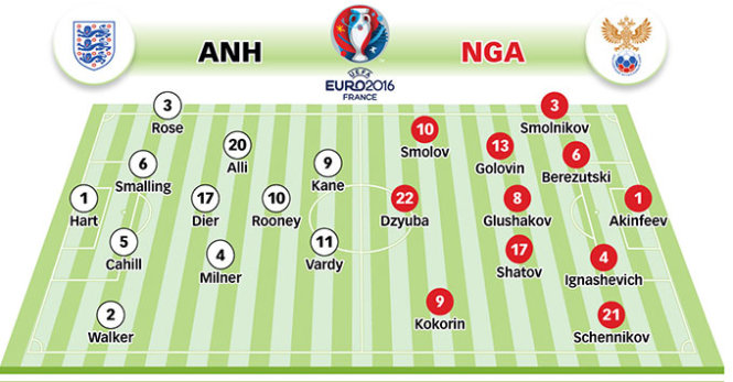Trong khi đó, việc sở hữu quá nhiều những cầu thủ chất lượng nhưng không ai nổi trội hơn ai khiến tuyển Anh dường như vẫn còn bước vào trận ra quân trong tâm thế “thử nghiệm đội hình”. Trừ cặp trung vệ Chris Smalling - Gary Cahill, thủ thành Joe Hart và tiền đạo Harry Kane cầm chắc suất đá chính, trọn dàn tiền vệ hiện vẫn còn nằm trong vòng bí ẩn. Bản thân việc đội trưởng Wayne Rooney sẽ chơi ở vị trí nào cũng là một câu hỏi lớn. Một trận đấu không như ý trước Nga có thể sẽ làm đảo lộn mọi kế hoạch nhân sự của HLV Hodgson.