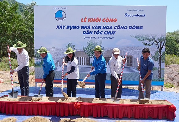 | Khởi công xây dựng nhà văn hóa cộng đồng cho đồng bào Chứt tại xã Dân Hóa, huyện Minh Hóa, Quảng Bình từ kết quả chặng 1 chương trình “Những bước chân vì cộng đồng”. (Ảnh: Hải Minh) |