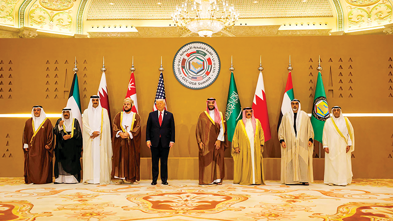 Tổng thống Mỹ Donald Trump và các nhà lãnh đạo vùng Vịnh tại cuộc gặp cấp cao ở Saudi Arabia hồi tháng 5-2025. Ảnh: Reuters