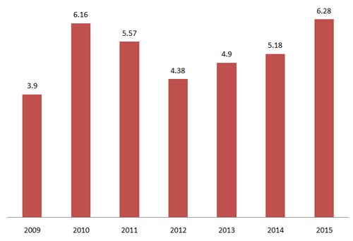 Theo Tổng cục Thống kê, tổng sản phẩm trong nước (GDP) 6 tháng đầu năm 2015 ước tính tăng 6,28% so với cùng kỳ năm 2014, trong đó quý I tăng 6,08%; quý II tăng 6,44%.