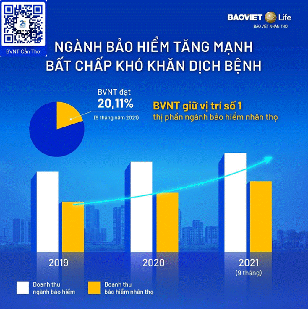 Tính chung trong 9 tháng năm 2021, GDP cả nước chỉ tăng 1,42% so với cùng kỳ nhưng điểm sáng là ngành bảo hiểm nằm trong số ít lĩnh vực vẫn duy trì mức tăng trưởng hai con số. Ðà tăng trưởng của lĩnh vực này liên tục được duy trì các năm gần đây với tốc độ tăng trưởng hàng năm kép (CAGR) đạt 20% trong giai đoạn từ năm 2016-2020. Dự báo tương lai ngành bảo hiểm nhân thọ sẽ còn tiếp tục phát triển hơn nữa khi hiện tại tỷ lệ Hợp đồng tại Việt Nam mới chỉ đạt 11%.