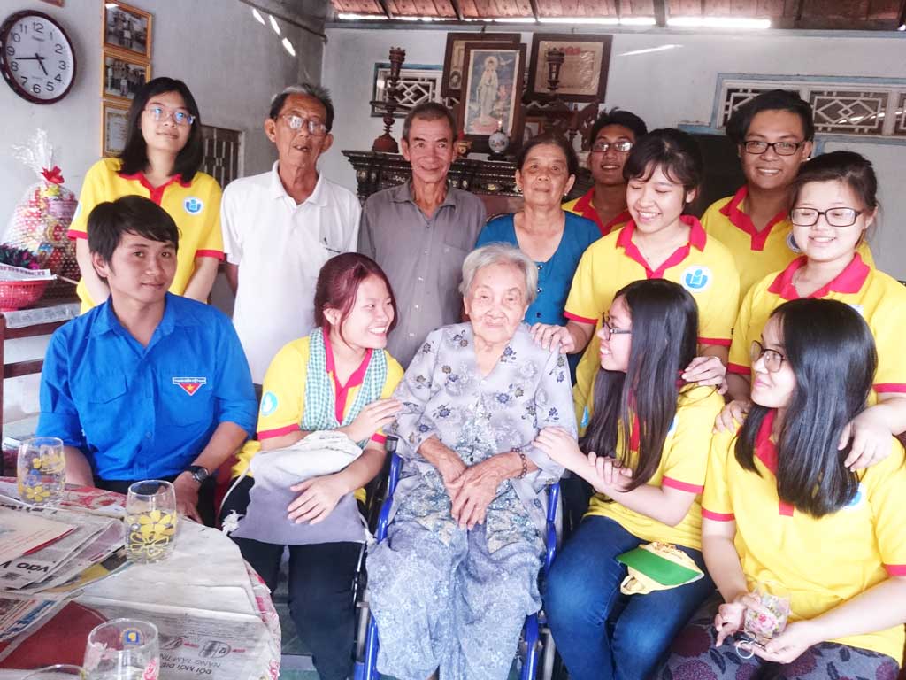 Và mùa xuân này, bên cạnh chính quyền địa phương, các tổ chức, đoàn thể đến chúc tết thì gian nhà nhỏ của mẹ lại rộn rã tiếng cười khi chỉ vừa giữa tháng Chạp, nhóm sinh viên Trường Đại học Quốc tế TP.HCM về thăm mẹ, giúp mẹ dọn dẹp nhà cửa, làm cỏ, quét sân và trò chuyện cùng mẹ. Chẳng phải con cháu ruột thịt, ấy vậy mà các em cứ như đã thân quen với mẹ từ thuở nào.