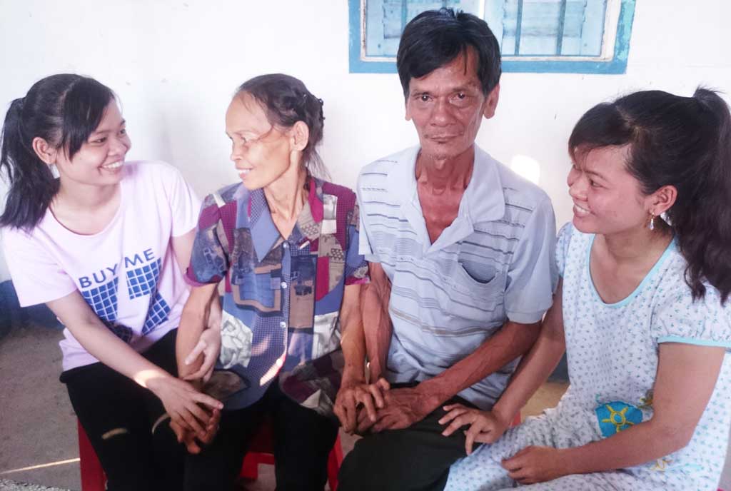 2. Gia đình chị Nguyễn Thị Huệ, ở ấp 4, xã Hòa Phú, huyện Châu Thành là hộ nghèo nhiều năm nay. Cả chị và chồng là anh Nguyễn Văn Ngôn (SN 1955) đều là bộ đội xuất ngũ. Cuộc sống của anh chị quá vất vả vì không có nghề nghiệp ổn định, thu nhập bấp bênh, không những thế bất hạnh còn ập đến. Năm 2004, anh Ngôn và cậu con trai lớn Nguyễn Hoàng Thiện (SN 1988) bỗng dưng mắc bệnh tâm thần. Anh bị nhẹ hơn, những lúc lên cơn thì chỉ đi lang thang quanh xóm hay quanh quẩn ở nhà chứ không quậy phá. Riêng cậu con trai bị nặng, không thể tiếp tục ở nhà nên phải gửi vào Trung tâm Bảo trợ xã hội tỉnh chăm sóc.