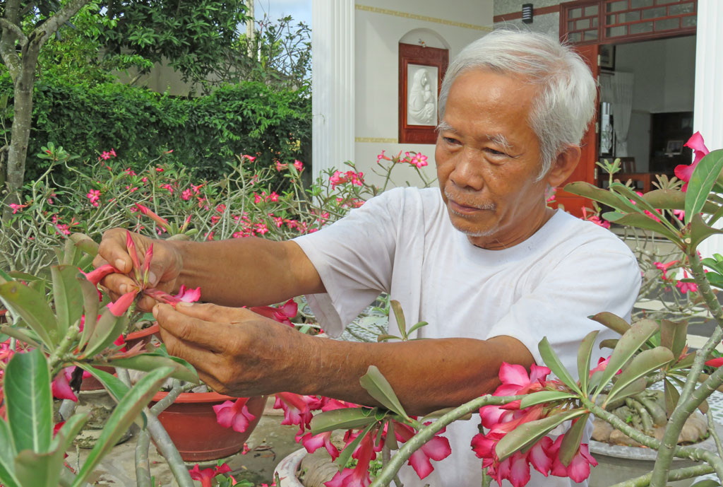 Giáo dân Huỳnh Văn Sơn chăm sóc kiểng