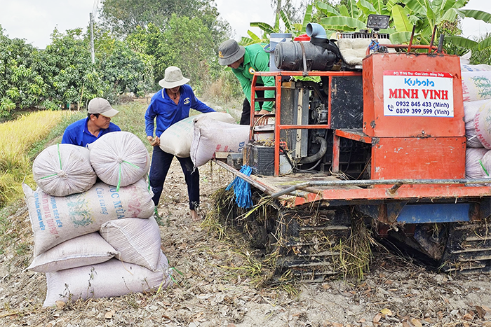 Đến tháng 3-2024, TP Cần Thơ đã thu hoạch dứt điểm lúa đông xuân (trong ảnh thu hoạch lúa tại huyện Cờ Đỏ).