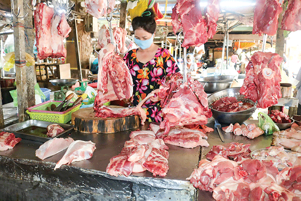 Thịt heo đang được bày bán tại một chợ trên địa bàn TP Cần Thơ.