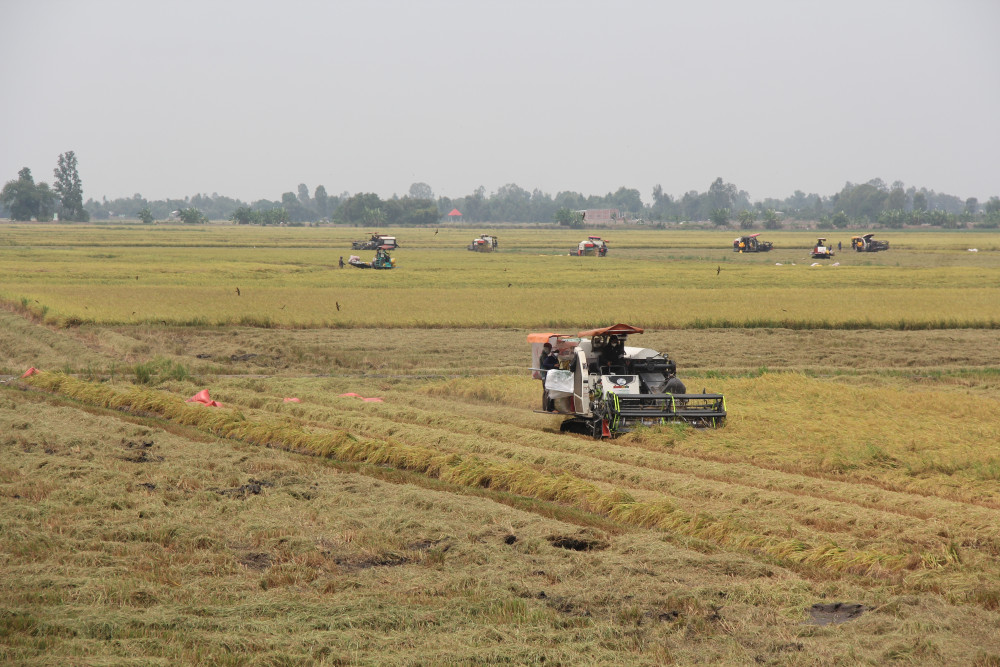 Nông dân thu hoạch lúa Hè Thu 2025