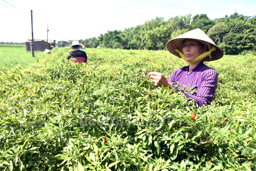 Người dân ấp Mỹ Thập, xã Mỹ Long Bắc thu hoạch ớt chỉ thiên.