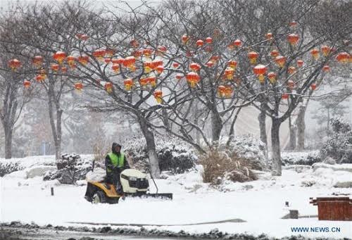Tuyết rơi dày đặc ở Uy Hải, tỉnh Sơn Đông. (Ảnh: Xinhua)