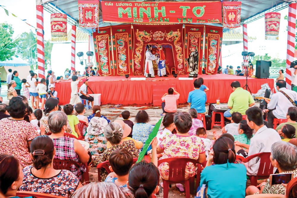 Lễ hội Kỳ yên là lễ hội truyền thống lâu đời, có hầu khắp các địa phương ở Nam Bộ. Trong ảnh là buổi hát bội trong dịp cúng đình. Ảnh: DUY KHÔI