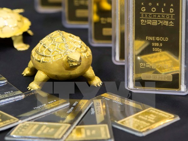 Vàng được trưng bày tại Sàn giao dịch vàng Seoul, Hàn Quốc ngày 27/6. (Nguồn: EPA/TTXVN)