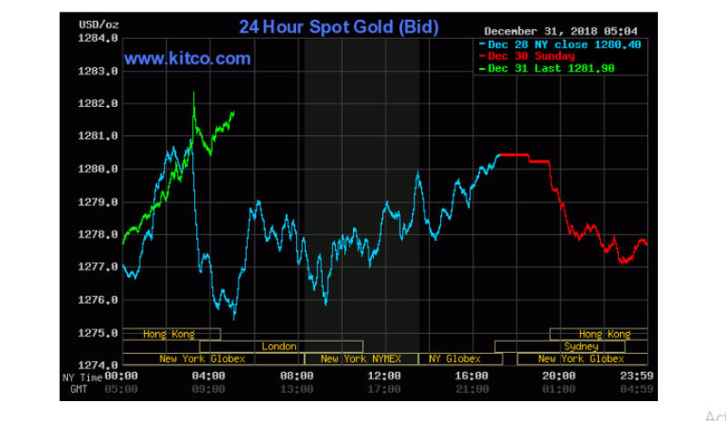 Chốt phiên giao dịch 31/12/2018 (giờ Việt Nam), giá vàng thế giới giao ngay đứng ở mức 1.282 USD/ounce.